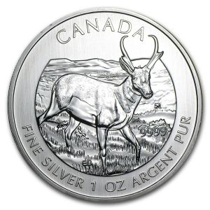 Канадская серебряная инвестиционная монета Антилопа из серии "Дикая жизнь".