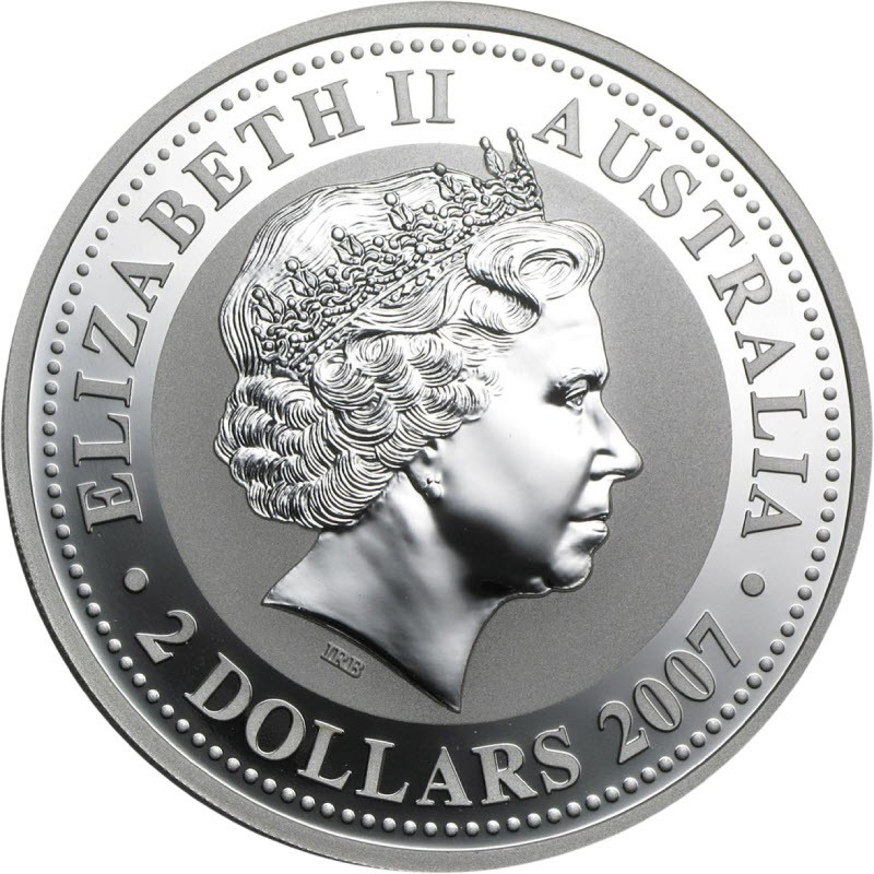 На аверсе изображена Ее Величество королева Елизавета II в бриллиантовой тиаре.  Под изображением королевы инициалы дизайнера IRB  (Ian Rank-Broadley). Вдоль  канта надпись: ELIZABETH II  AUSTRALA · 2 DOLLARS 2007 · (Елизавета II, страна-эмитент, номинал, год чеканки).