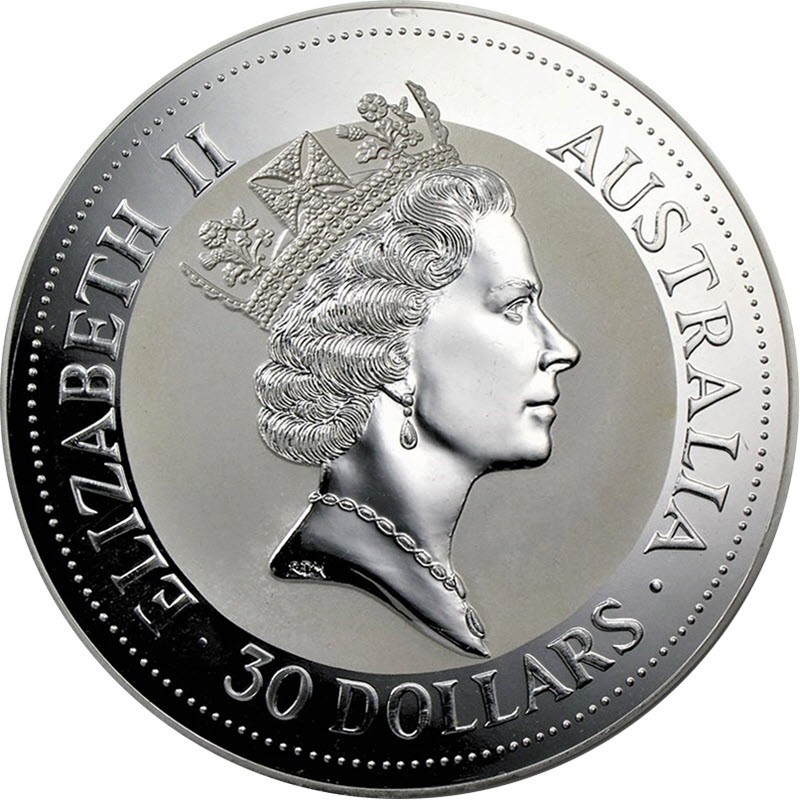 На аверсе изображена королева Елизаветы II с бриллиантовой диадемой и жемчужным ожерельем, дизайнер Raphael David Maklouf (Рафаэль Дэвид Маклауф). Инициалы дизайнера RDM выгравированы крошечными буквами на усечении шеи. Вдоль канта надпись: ELIZABETH II AUSTRALIA · 30 DOLLARS · (Елизавета II, страна-эмитент, номинал).
