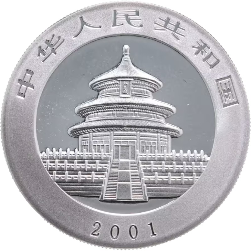 Серебряная монета Китая "Панда" 2001 г.в., 31.1 г чистого серебра (проба 999)