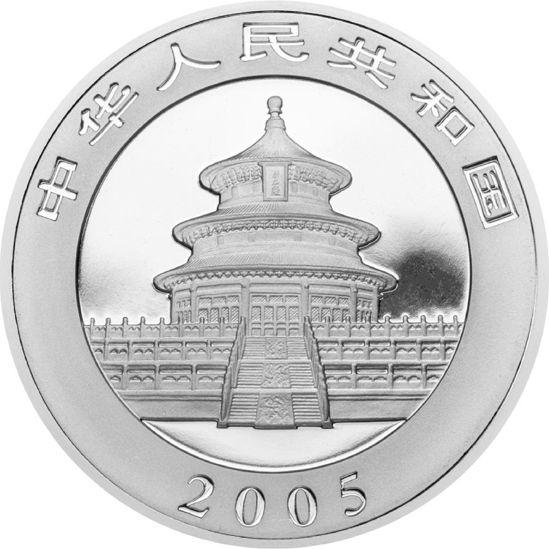На аверсе изображен Зал молитвы урожая. Круглое здание шириной 36 метров и высотой 38 метров является частью территории, известной во всем мире как Храм Неба. Здание стоит на трехъярусной мраморной террасе высотой 20 метров. Храмовый комплекс расположен на юге мегаполиса Пекин в большом парке и с 1998 года является частью Всемирного наследия ЮНЕСКО.