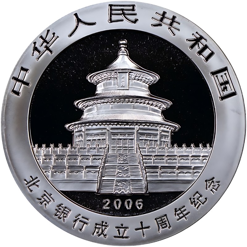 Серебряная монета Китая "Панда. 10-я годовщина банка" 2006 г.в., 31.1 г чистого серебра (проба 999)