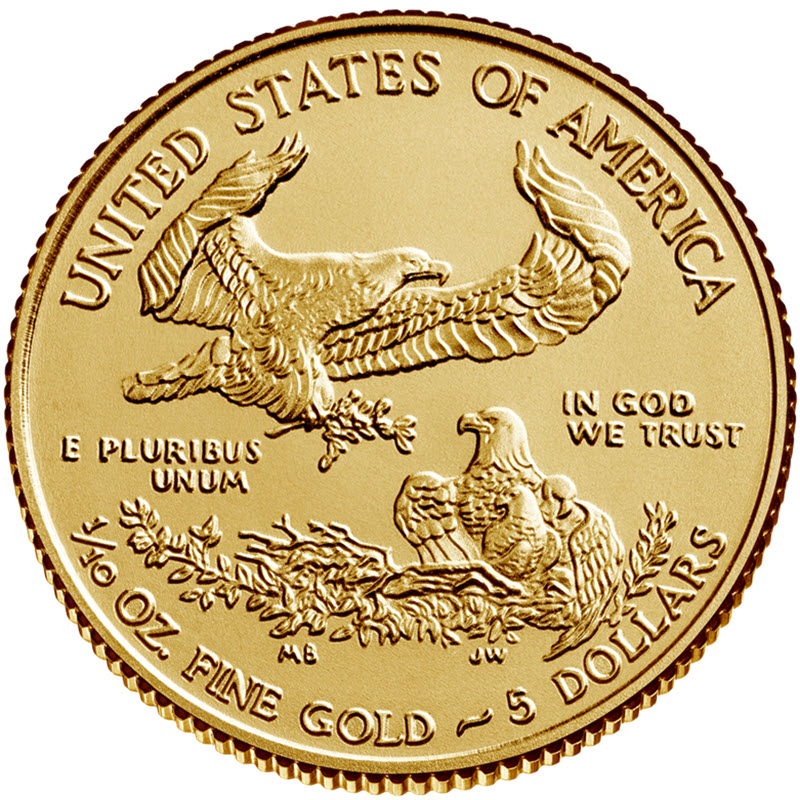 Эта золотая инвестиционная монета была впервые отчеканена в 1986 году. По закону золото для изготовления Американского орла должно быть добыто в США. В составе сплава монеты содержится серебро и медь для придания монете прочности и долговечности.