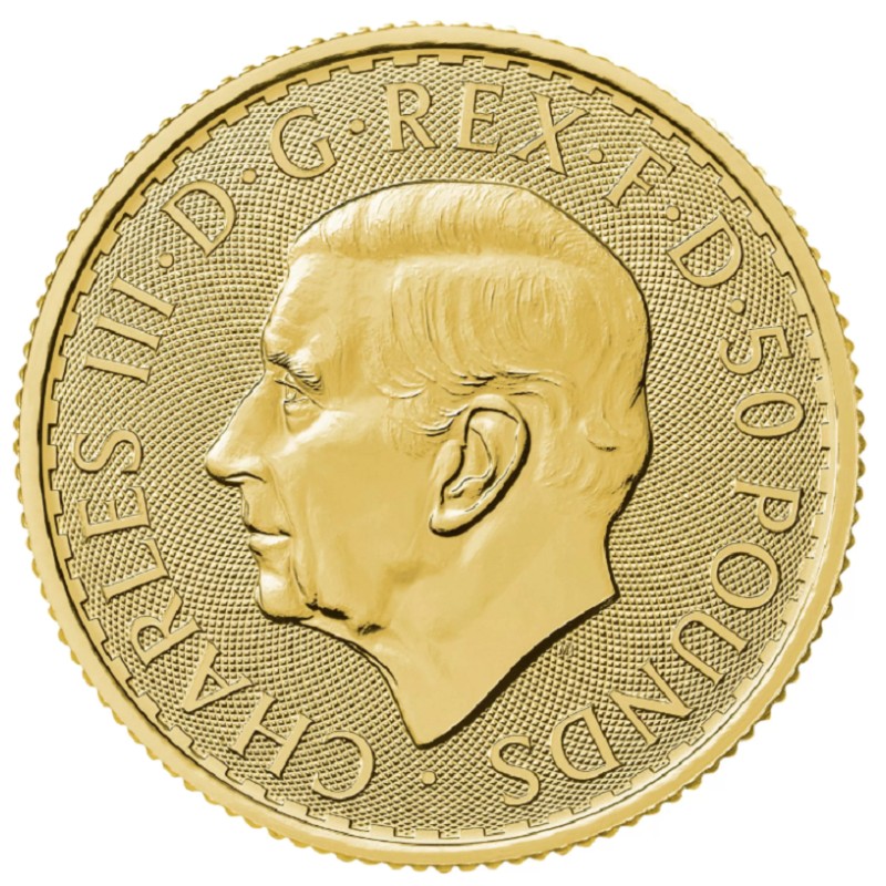 Золотая инвестиционная монета весом 1/2 унции, правления Чарльза III.