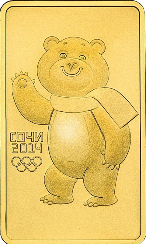 К олимпийским играм, которые прошли в начале 2014 года, была выпущена монета талисман Белый Мишка (животное - один из талисманов состязаний четырехлетия).