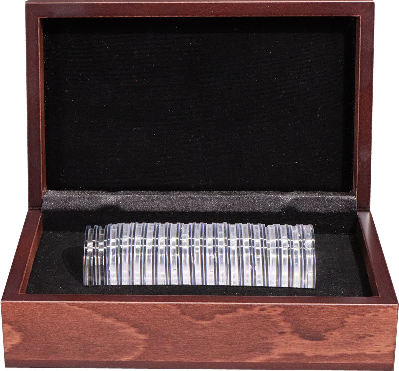 Деревянный футляр для 20 монет в капсулах Ø = 44.