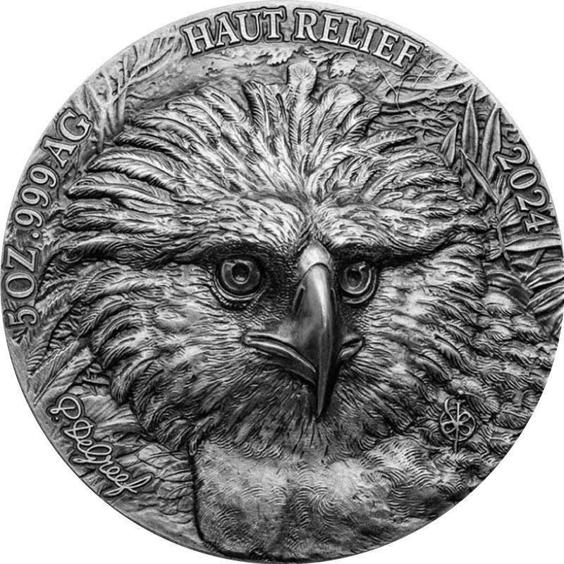 Серебряная монета Кот-д'Ивуара "Большая пятерка Азии. Филиппинский орел" 2024 г.в., 155.5 г чистого серебра (проба 999)