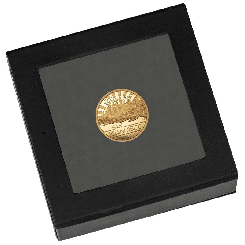 На реверсе изображен вид на Сан-Франциско с моста Бэй-Бридж. Надпись: Hello from SAN FRANCISCO 2024 (Привет из Сан-Франциско, год чеканки).