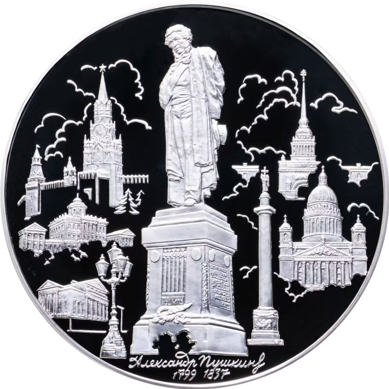 Серебряная монета России "Пушкин А.С." 1999 г.в., 1000 г чистого серебра (Проба 900)