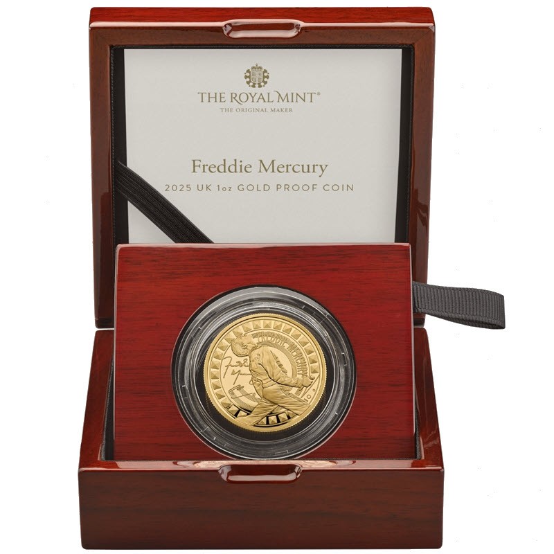 Золотая монета Великобритании "Легенды музыки. Фредди Меркьюри" 2025 г.в. (пруф), 31.1 г чистого золота (проба 9999)