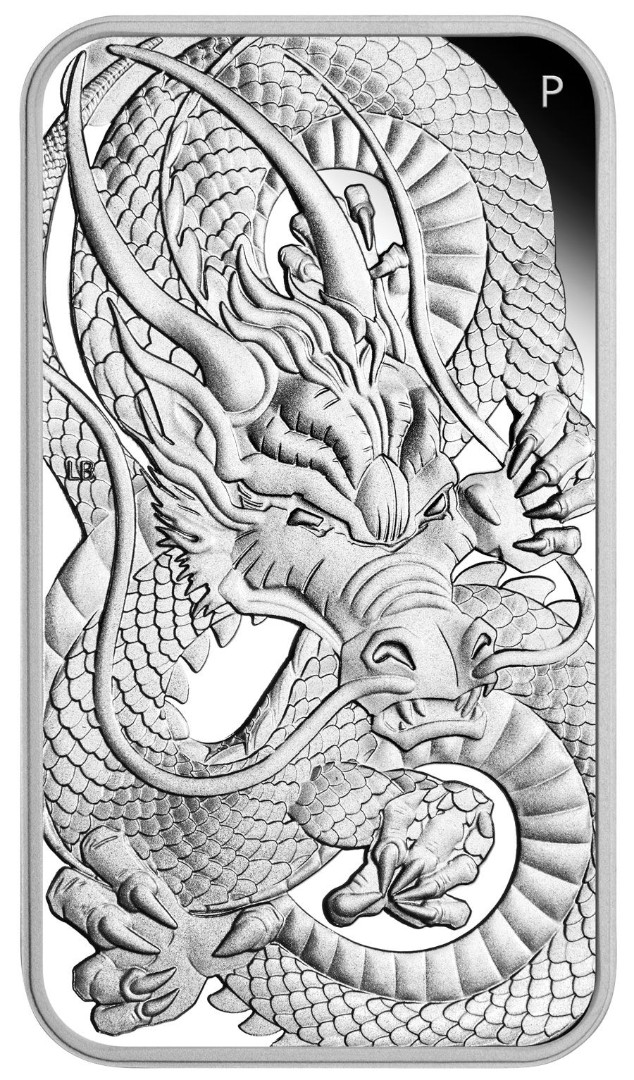 На реверсе изображен один дракон, чешуйчатая змеевидная форма которого занимает большую часть поверхности монеты. Существо прорисовано в мельчайших деталях: пронзительные глаза, острые рога, длинные изогнутые усы и бритвенные когти. Знак монетного двора Перта «P» расположен в правом верхнем углу.