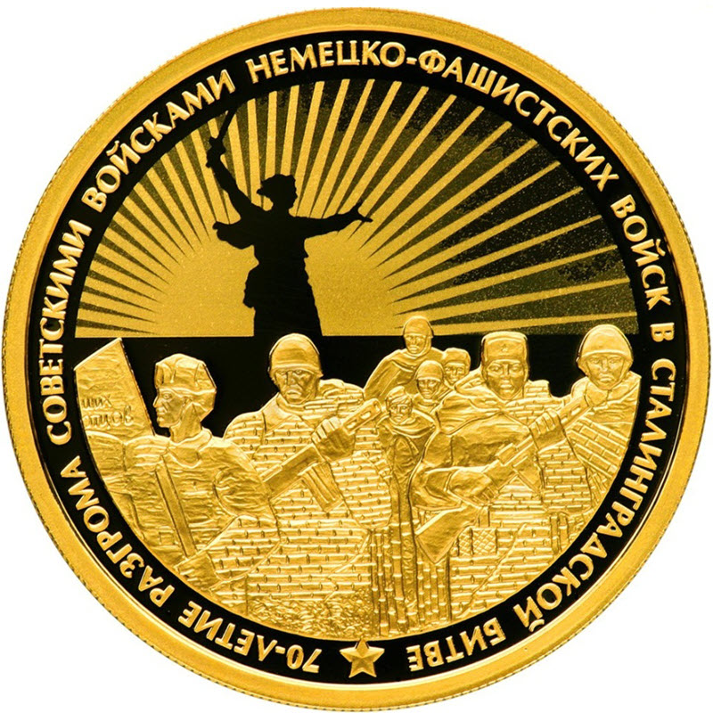 Золотая монета Банка России посвящена Сталинградской битве. У нее качество пруф. Тираж: 500 штук.