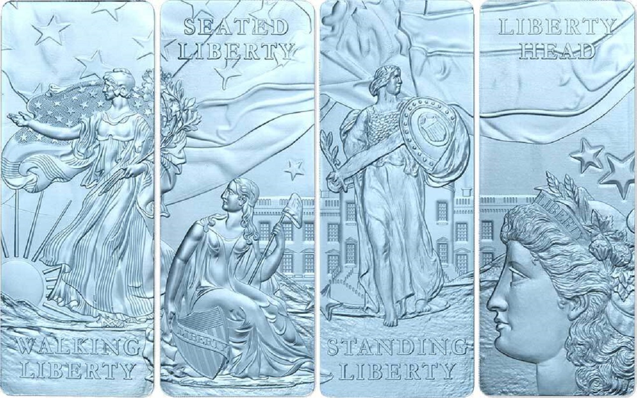 Этот набор из 4 слитков серебряных монет прославляет Свободу посредством четырех изображений Леди Свободы в разных положениях. Монеты этого набора изготовлены по инновационной технологии "«нанопокрытие Blue Ice»" и поставляются в элегантном футляре вместе с сертификатом подлинности. Ограниченный тираж 500 экземпляров!