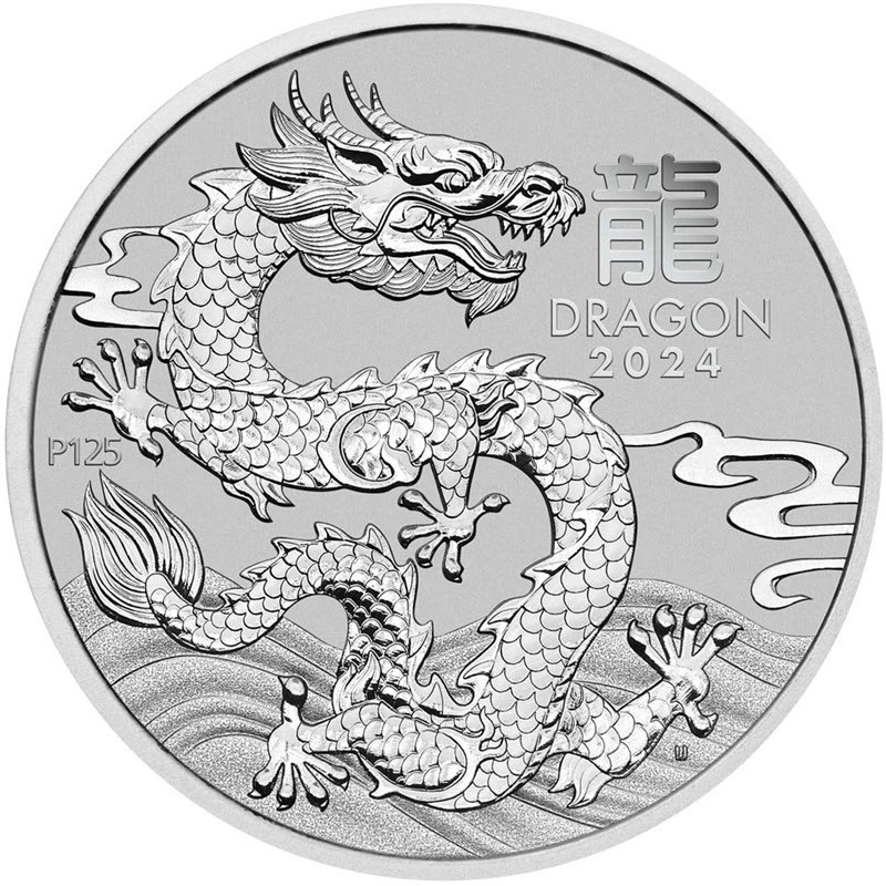 Платиновая монета Австралии "Год Дракона" 2024 г.в., 31.1 г чистой платины (проба 9995)
