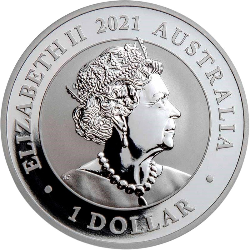 На аверсе изображен портрет Её Величества Королевы Елизаветы II дизайнера Джоди Кларка (JC). Вдоль канта надписи: ∙ ELIZABETH II 2021 AUSTRALIA ∙ 1 DOLLAR (Елизавета II, год чеканки, страна-эмитент, номинал).