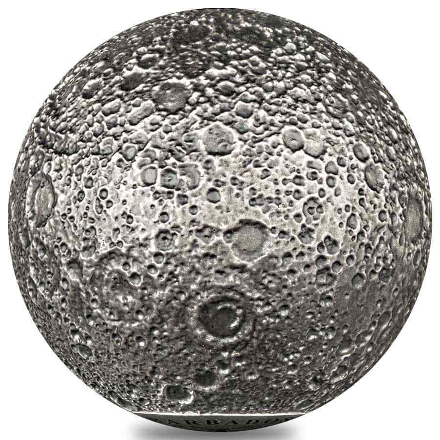 Серебряная монета сферической формы, изображающая ультрареалистичную поверхность Луны. Монета поставляется в стеклянном футляре-кубе. Тираж 1499 штук.