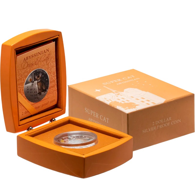 Эта чудесная серебряная монета весом 1 унция из серии «Собаки и кошки» (Dogs&Cats) посвящена абиссинской кошке.