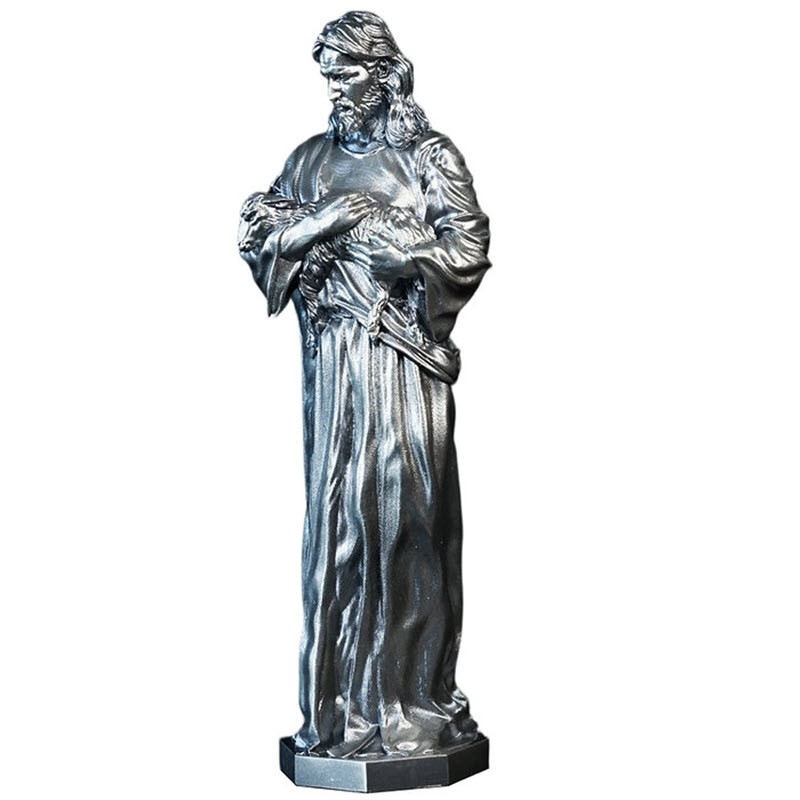 Эта чудесная серебряная монета весом в 97 грамм 925 пробы посвящена Иисусу, держащего ягнёнка на руках – символ сострадания, защиты и всеобщего мира. У нее размеры 110 × 39 × 28 мм и качество античной отделки. Поставляется в футляре с сертификатом подлинности. Тираж: 177 штук.