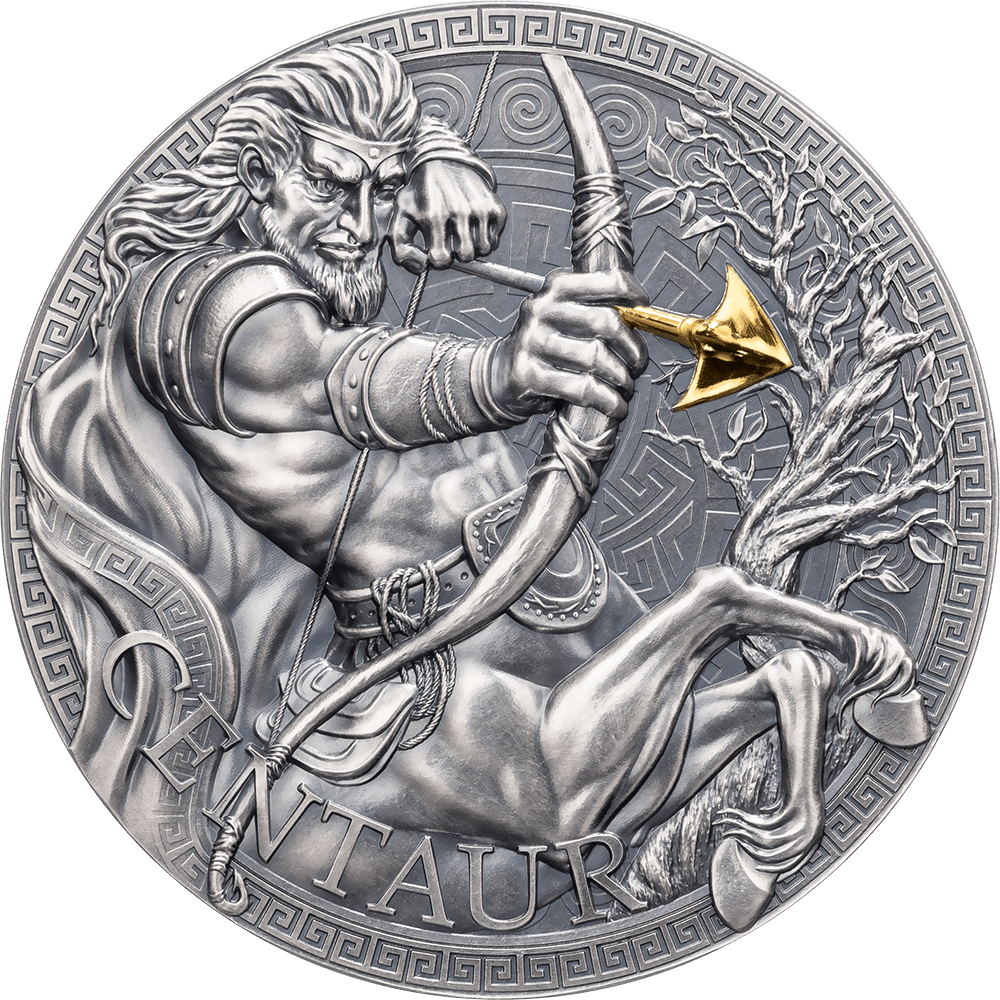 На реверсе монеты изображен Кентавр — существо с верхней частью тела человека и нижней частью тела лошади. В изображении чувствуется невероятная точность, передаваемая благодаря выборочной позолоте. В нижней части реверса надпись: "CENTAUR" - название монеты.