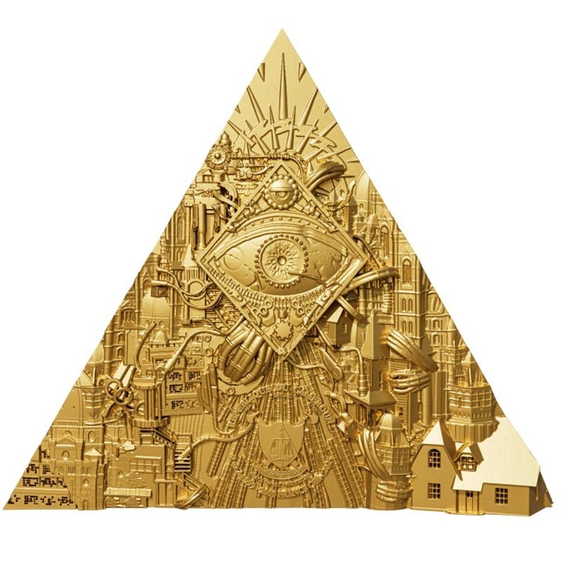 Эта прекрасная серебряная монета весом в 2 унции посвящена Всевидящему Оку. У нее размеры 50 Х 44 мм, качество античной отделки, высокий рельеф и выборочное золочение. Поставляется в оригинальном футляре с сертификатом подлинности. Тираж: 299 штук.
