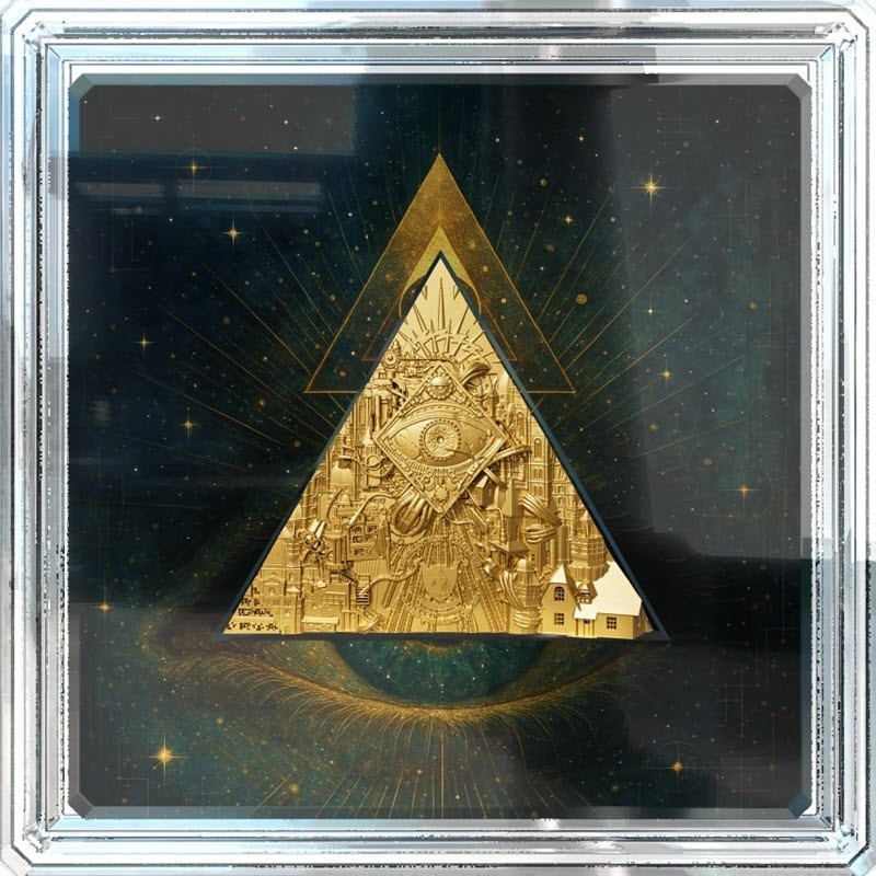 Серебряная монета Камеруна "Всевидящее око" 2025 г.в. (с позолотой), 62.2 г чистого серебра (проба 999)