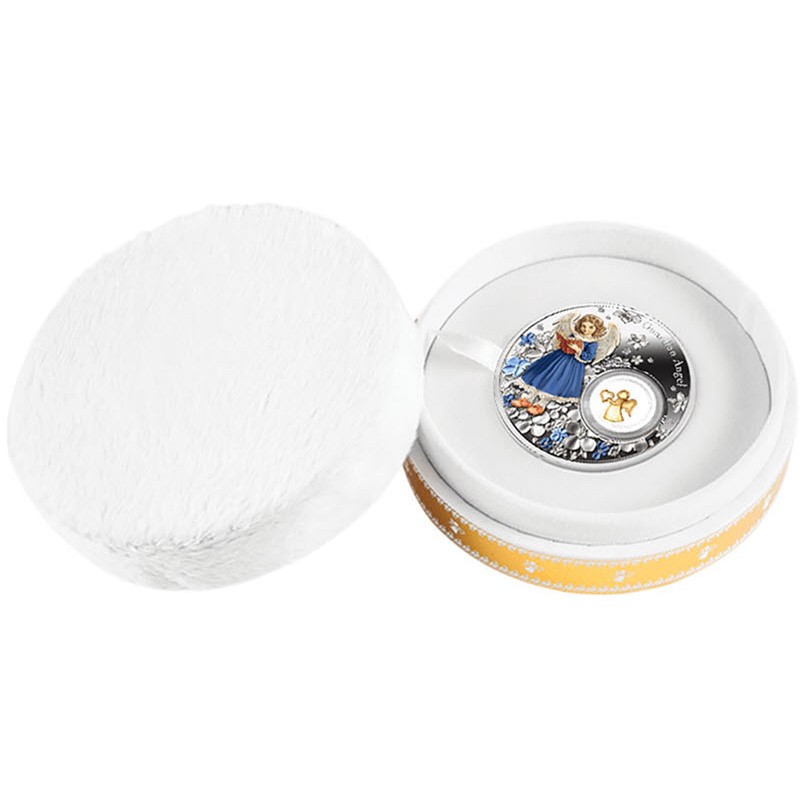 Эта чудесная серебряная монета Ниуэ посвящена ангелу-хранителю. У нее качество пруф и селективная окраска. Поставляется в футляре с сертификатом подлинности. Тираж: 999 штук.