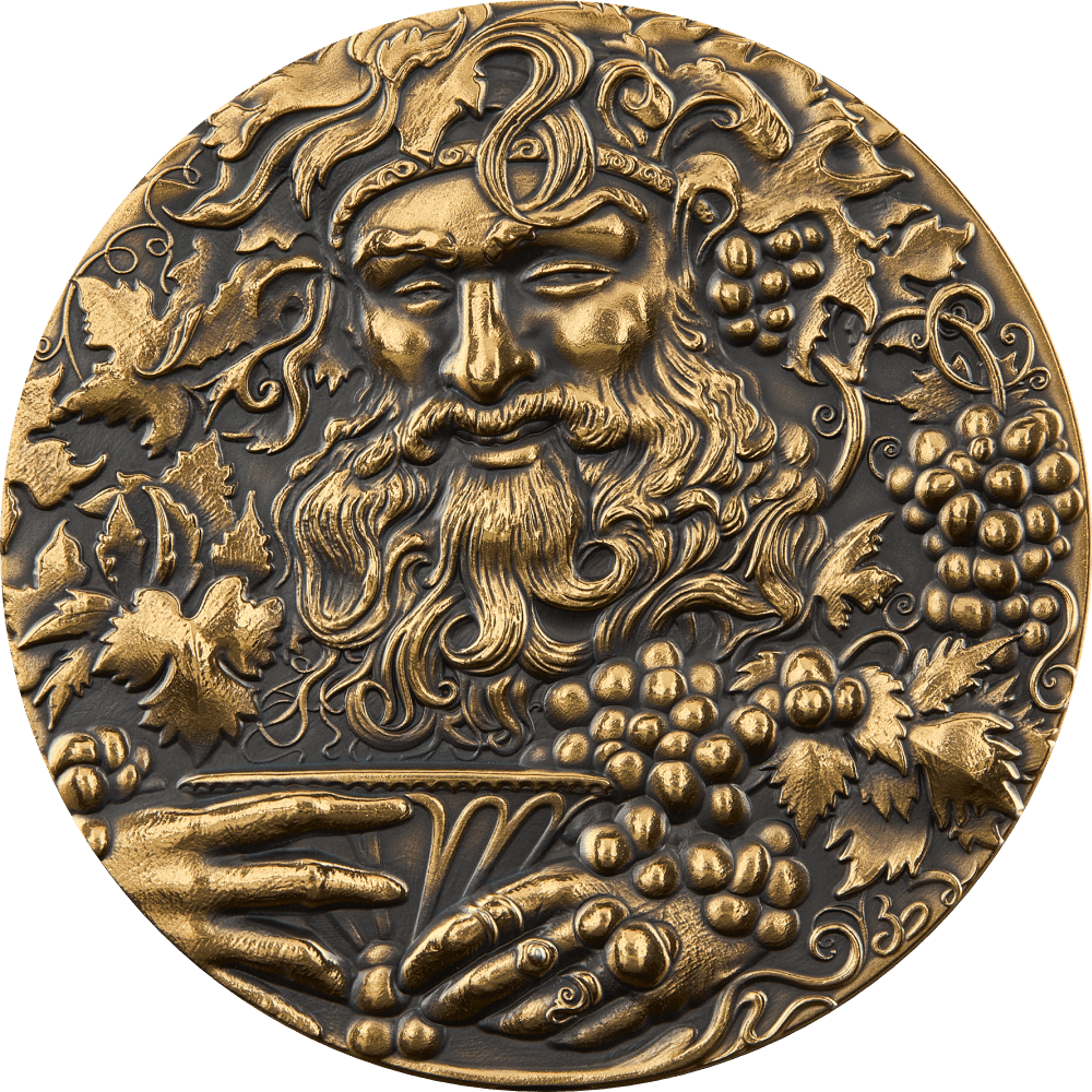 Эта серебряная монета весом в 2 унции является частью серии «Двенадцать олимпийцев» и посвящена Бахусу (Вакху), богу вина. У монеты прекрасный дизайн с высоким рельефом, качество античной отделки, позолота и она поставляется в футляре вместе с сертификатом подлинности. Ограниченный тираж всего 500 штук по всему миру!