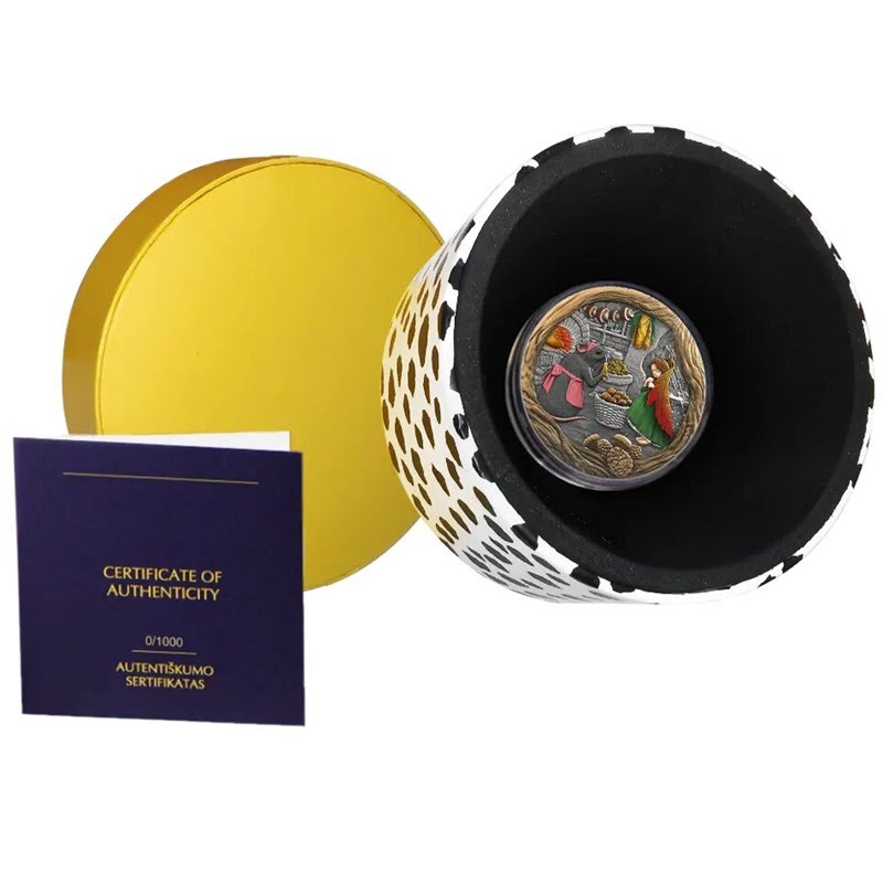 Эта чудесная серебряная монета от Литовского монетного двора посвящена Дюймовочке. Дизайнер Audronė Kalinauskienė. У нее селективная окраска и качество античной отделки. Поставляется в оригинальном футляре с сертификатом подлинности. Тираж: 1.000 штук.
