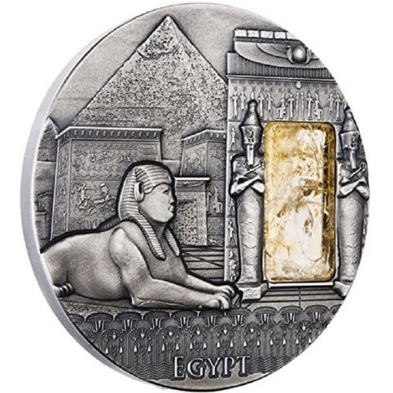 Монета из серии Imperial Art, посвященной египетской цивилизации. Этот сериал об искусстве, архитектуре и достижениях величайших цивилизаций и империй. Тираж всего 500 шт. Каждая монета пронумерована на ребре. Цитрин, размещенный на монете, символизирует песок и пустыню.