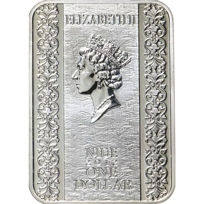 На аверсе изображена королева Елизавета II с бриллиантовой диадемой и жемчужным ожерельем, дизайнер Рафаэль Дэвид Маклауф (Raphael David Maklouf). Вверху надпись: ELIZABETH II (Елизавета II), внизу: NIUE 2012 ONE DOLLAR (страна-эмитент, год чеканки, номинал).