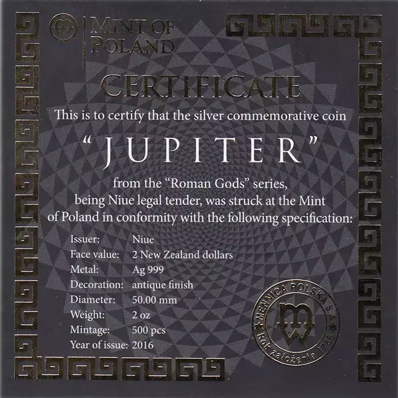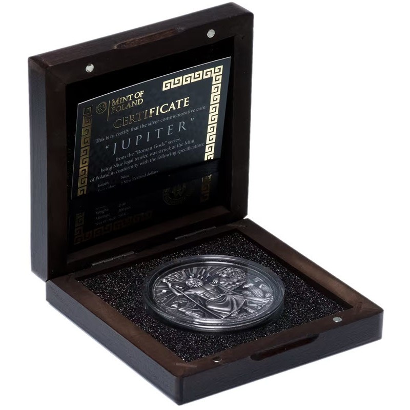 Эта замечательная серебряная монета весом в 2 унции – первая из серии «Римские боги» - посвящена Юпитеру. У нее высокий рельеф и качество античной отделки. Поставляется в футляре с сертификатом подлинности. Тираж: 500 штук.