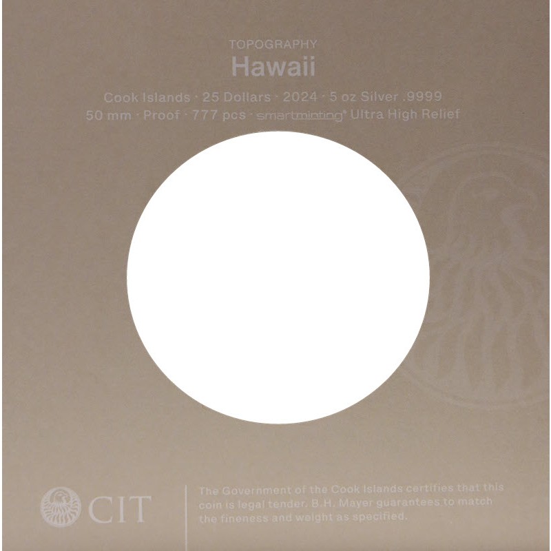 Серебряная монета Островов Кука "Топография. Гавайи" 2024 г.в. (ультравысокий рельеф пруф), 155.5 г чистого серебра (проба 9999)
