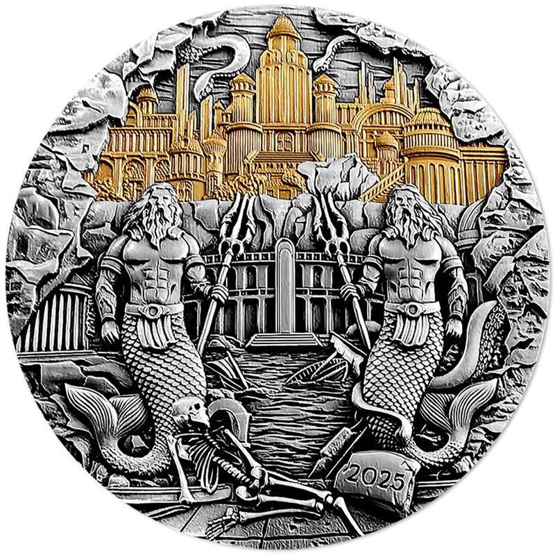 Серебряная монета Самоа "Атлантида" 2025 г.в. (с позолотой), 155.5 г чистого серебра (проба 999)