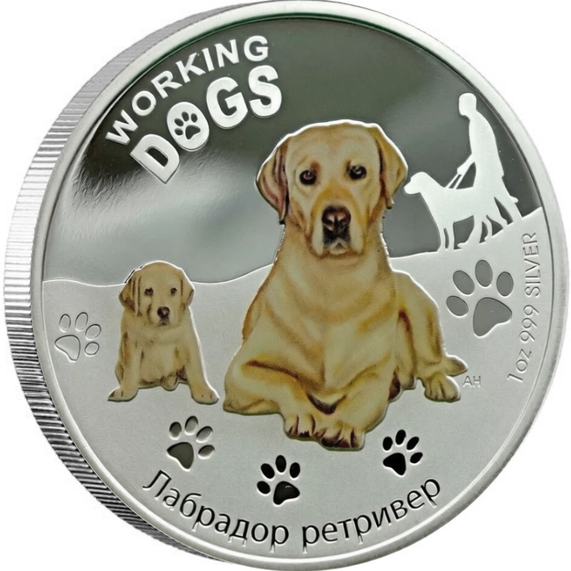 Эта чудесная серебряная монета Пертского монетного двора Австралии посвящена верному помощнику человека – лабрадору-ретриверу.