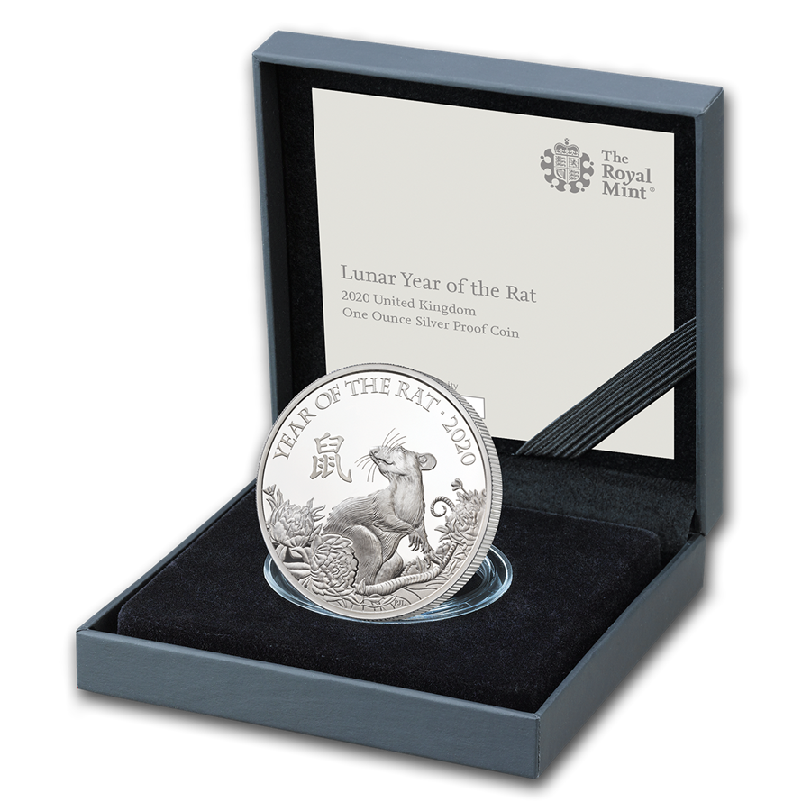 Серебряная монета Великобритании "Лунный календарь" - год Крысы 2020 года выпуска. Ограниченный тираж, подарочная упаковка с сертификатом.