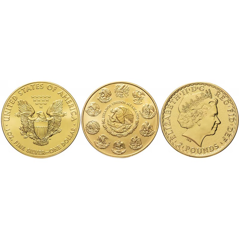 Великобритания Мексика США Набор из 3-х серебряных монет "Унция Искусства" 2015 г.в., 3*31.1 г чистого серебра (проба 999)