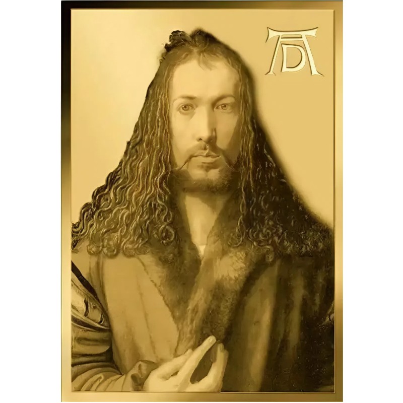 Эта потрясающая золотая монета весом 1/1000 унции посвящена картинам Альбрехта Дюрера. У нее размеры 11 Х 15.4 мм и качество пруф-лайк. Поставляется в карточке с сертификатом подлинности. Тираж: 50 000 штук.