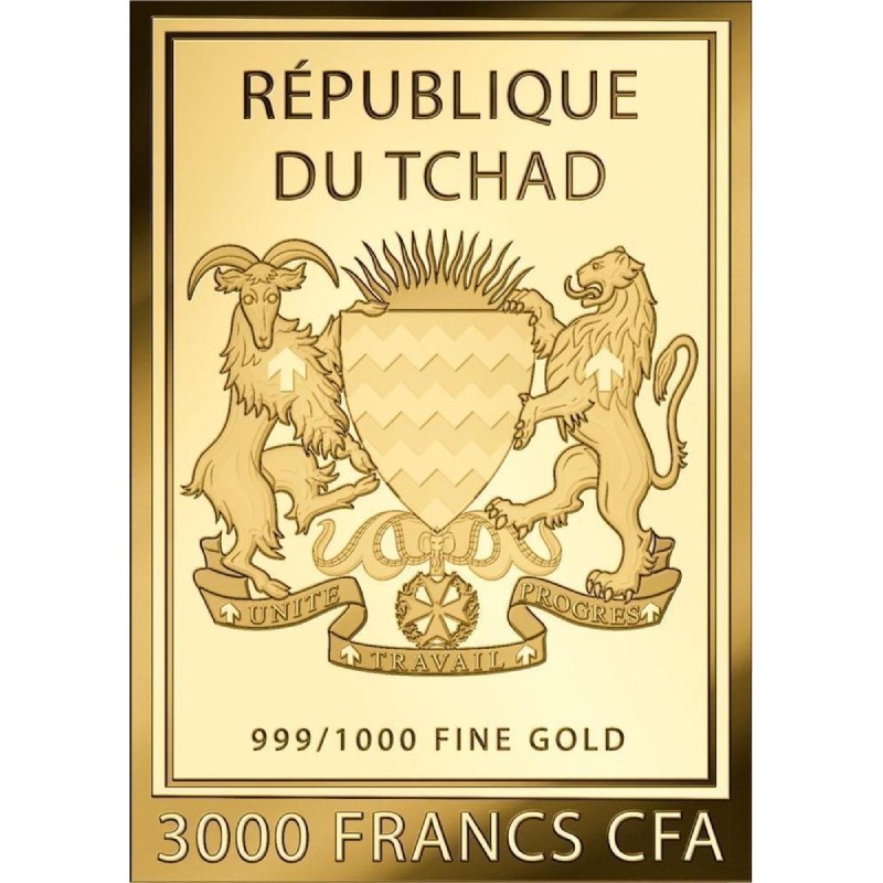 На аверсе всех монет изображен герб Республики Чад. Над гербом надпись: REPUBLIQUE DU TCHAD 999/1000 FINE GOLD 3000 FRANCS CFA (страна-эмитент, номинал, проба золота).
