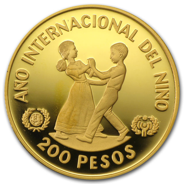 В течение 1979-1981 гг. ЮНИСЕФ (Международный чрезвычайный детский фонд ООН) стал инициатором создания международной коллекции памятных монет, посвященных Международному году детей. В число этих монет входит золотая монета Доминиканской Республики с номиналом в 200 песо.
