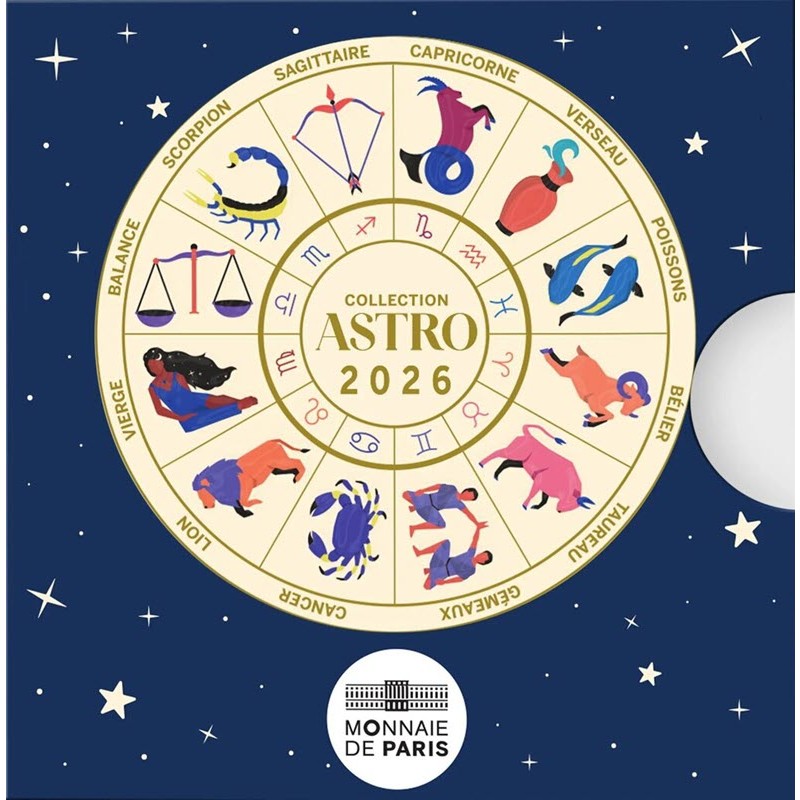 Золотая  монета Франции 2026 года от монетного двора Monnaie de Paris «Потолки Оперы Гарнье» весом 4 грамма посвящена Астрологии. У нее качество BU. Поставляется в оригинальном футляре с сертификатом подлинности. Тираж: 5000 штук.