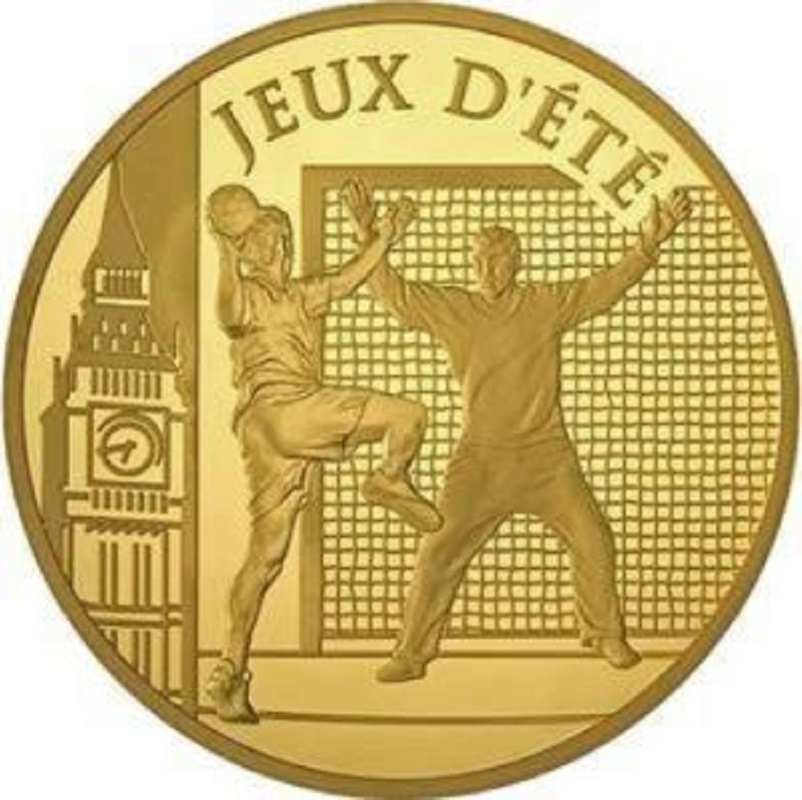 Золотая монета от монетного двора в Париже, выпущенная к Чемпионату мира по гандболу 2010 года. Ограниченный тираж — 99 штук.