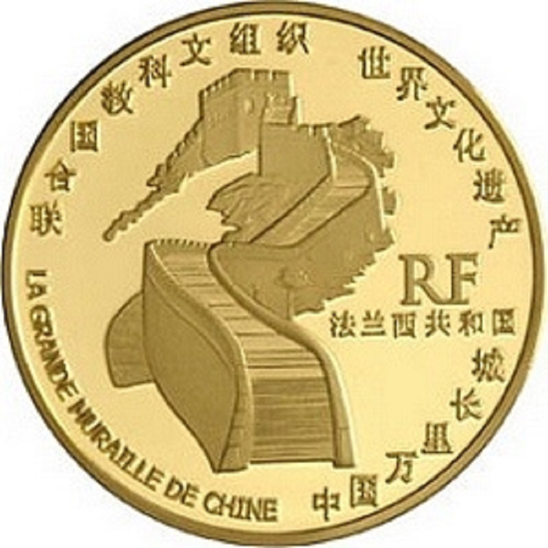 На аверсе новых монет изображен участок стен Бадалин, расположенный в 60 км от Пекина. По окружности монет надпись на двух языках (китайском и французском): «LA GRANDE MURAILLE DE CHINE». Справа от стены — аббревиатура «RF» (République Française).