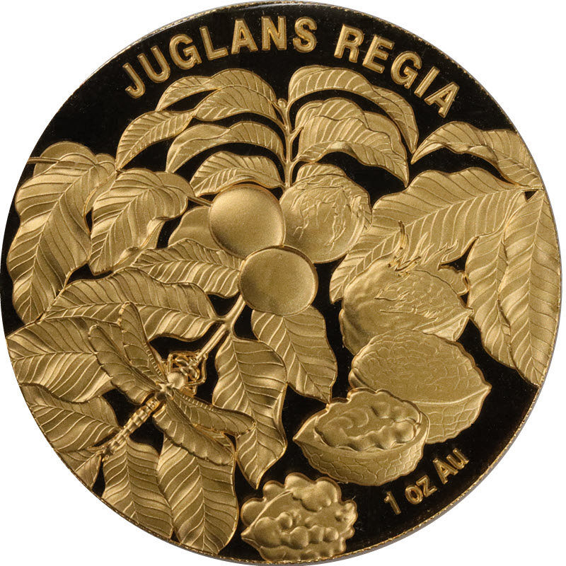 Нечасто можно встретить на золотых инвестиционных монетах изображения плодоносящих деревьев. Как правило, если речь идет о представителях различных царств природы, то для инвестиционных монет выбираются представители фауны: китайская «Панда», американский «Орел», испанская «Рысь», австралийский «Кенгуру». Поэтому монета с грецким орехом уже априори является уникальной и будет встречена с энтузиазмом в сообществе инвесторов.