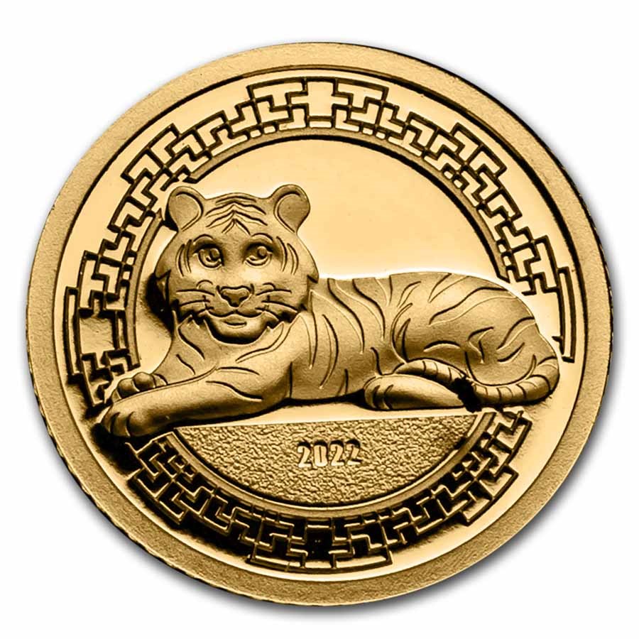 Золотая монета Монголии, выпущенная к началу лунного года Тигра — одна из самых маленьких монет мира, всего 0,5 грамм чистого золота. Тираж — 5000 штук.