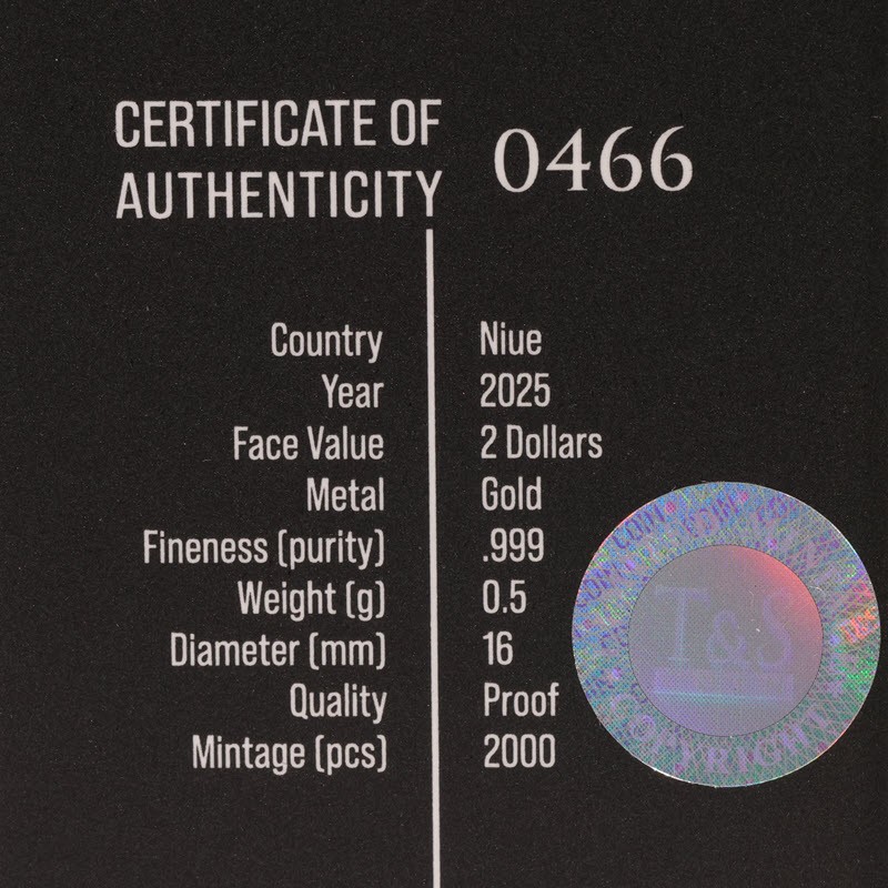 Золотая монета Ниуэ "Архангел Михаил" 2025 г.в. (пруф), 0.5 г чистого золота (проба 999)