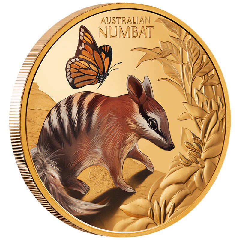 Эта чудесная золотая монета весом 1 унция из серии «Милый и нежный» посвящена малышу нумбата. У нее качество пруф и селективная окраска. Поставляется в оригинальном футляре с пронумерованным сертификатом подлинности. Тираж: 99 штук.