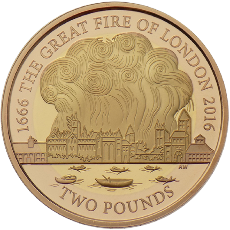 Золотая монета, посвященная самой знаменитой огненной катастрофе 17-го века.