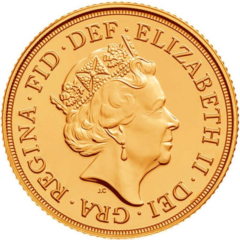 Спустя год после знаменитой битвы при Ватерлоо, в Британии был учрежден золотой стандарт. До 1816 года общепринятым в мировой торговле был биметаллизм, то есть, использование золота и серебра в качестве законных платежных средств. После того как наступил дефицит сначала серебра, а затем золота, Британия приняла решение о том, что денежно-кредитная стабильность может быть достигнута путем оценки ее валюты только в золоте. Валютный комитет Тайного совета рекомендовал принять первоначальное предложение о золотом стандарте, которое сделал Лорд Ливерпуль десять лет назад королю Георгу III. В 1816 году был обнародован закон о выпуске золотых монет, согласно которому серебряные монеты были отчеканены с внутренней стоимостью значительно ниже их номинальной стоимости. Появилась первая официальная монета: старая гинея была заменена в 1817 году на соверен, стоимостью в 20 шиллингов и стандартной пробой в 22 карата. Содержание золота в этой монете составляло 7,32 г или 0,235 тройских унций, что эквивалентно одному фунту стерлингов. Также в 1817 году Бенедетто Пиструччи создал знаменитое изображение «Святой Георгий и дракон», которое используется по настоящее время.