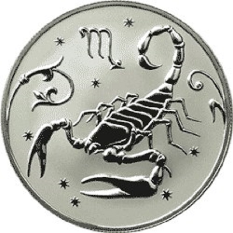 Серебряная монета из серии "Знаки Зодиака" весом 1/2 унции, выпущенная в русском стиле.