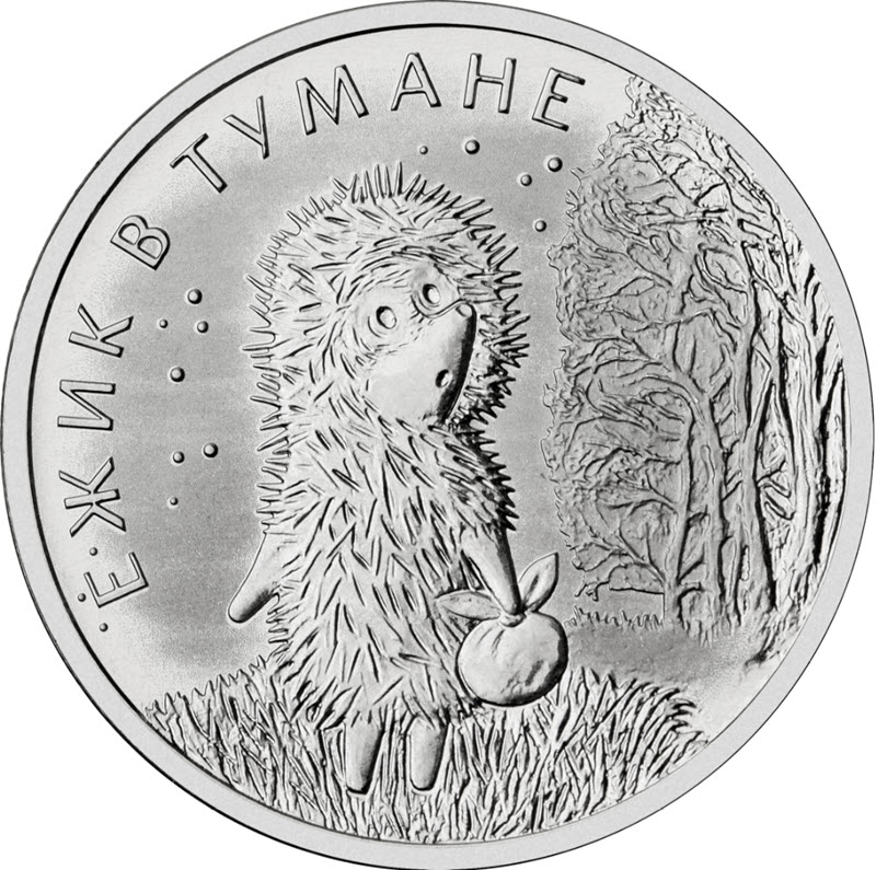 Стальная монета 2024 г. Банка России из серии «Российская (советская) мультипликация» посвящена мультфильму «Ежик в тумане». У нее качество анциркулейтед. Тираж: 850000 штук.